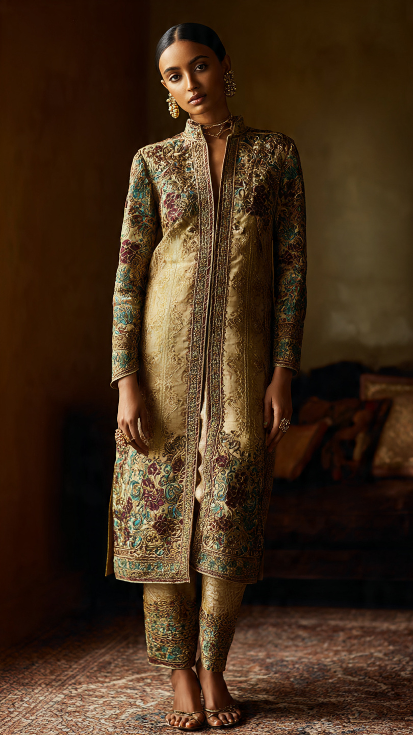 Beige Kurta with Collar Neck