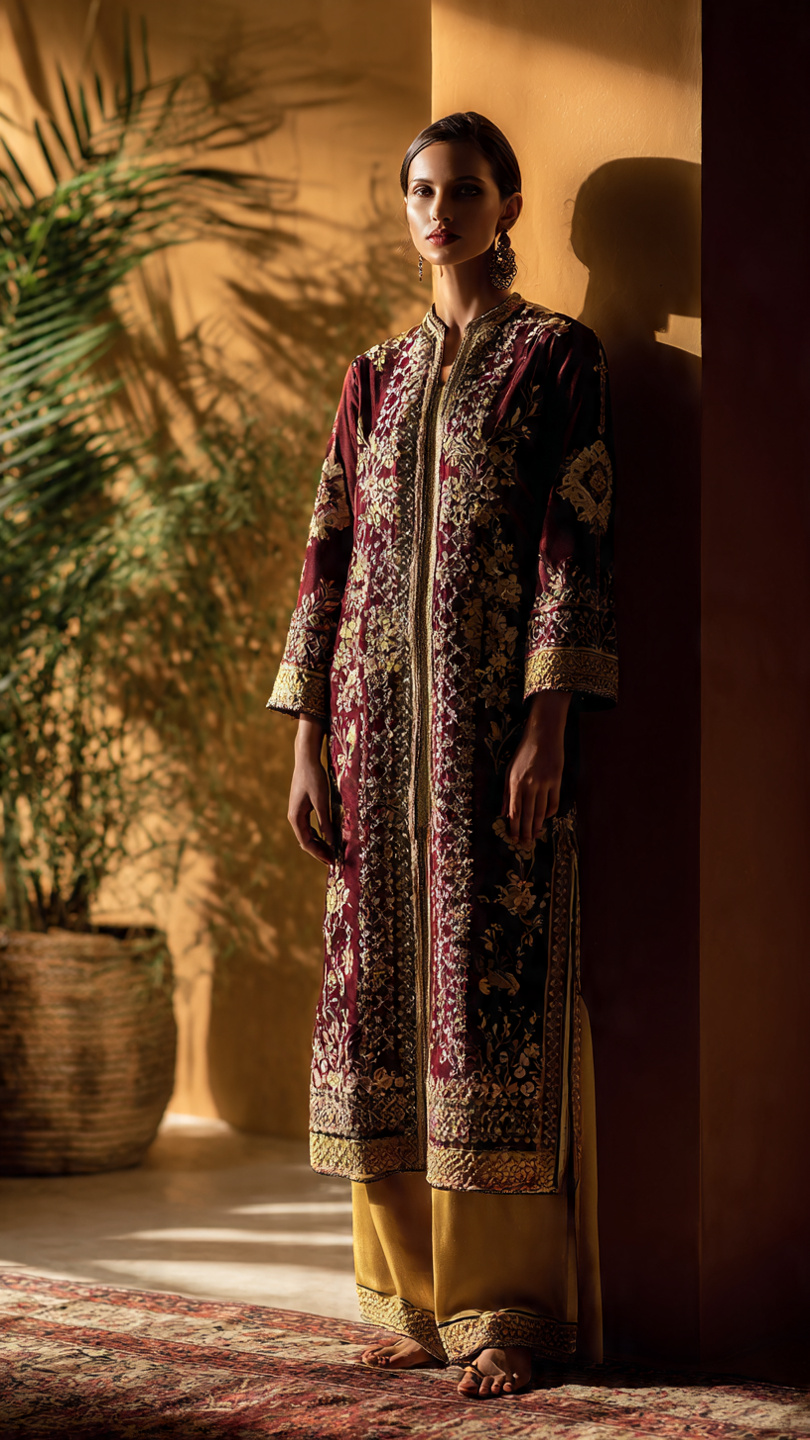 Maroon Embroider Kurta