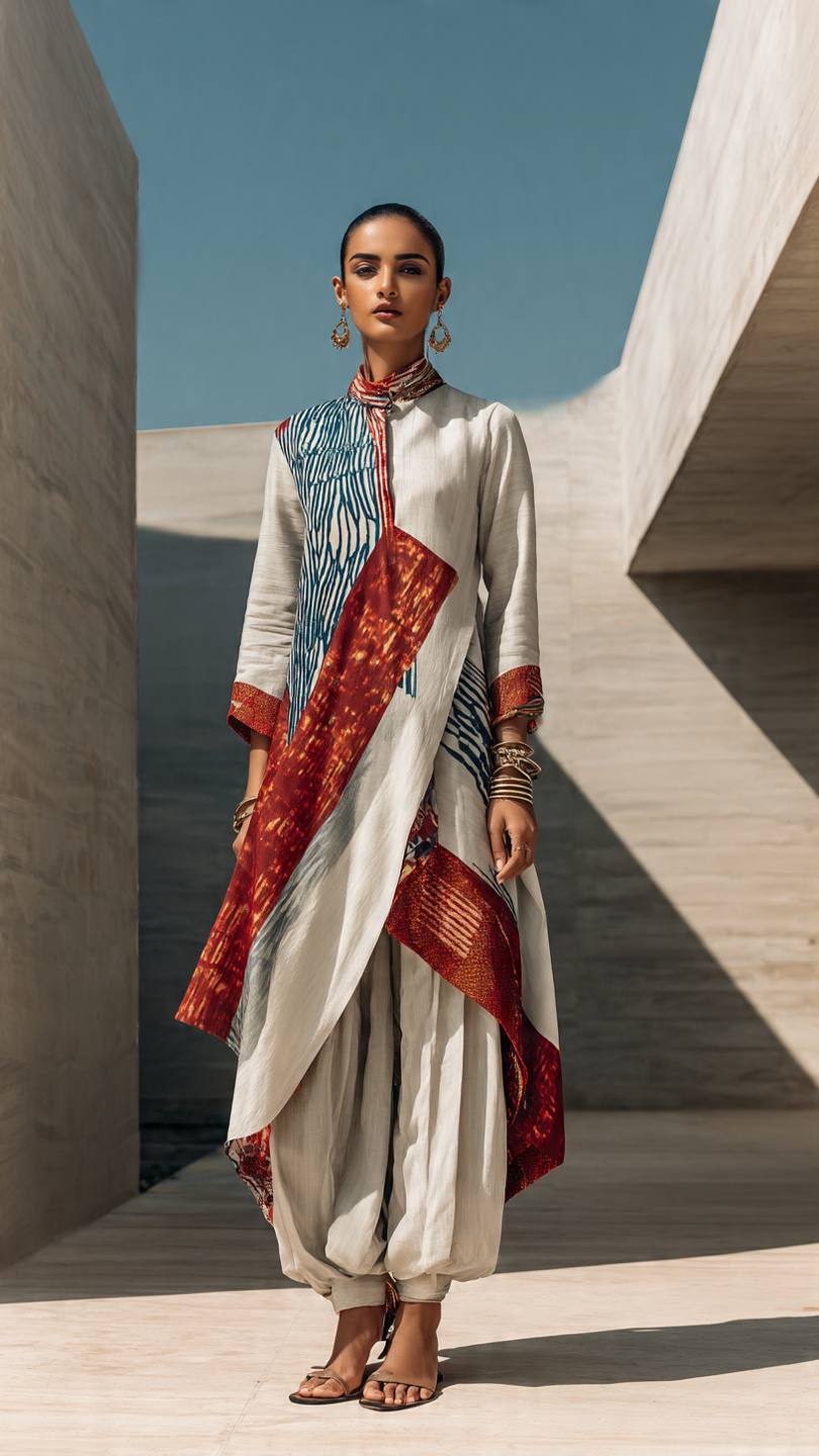 White and Red Kurta